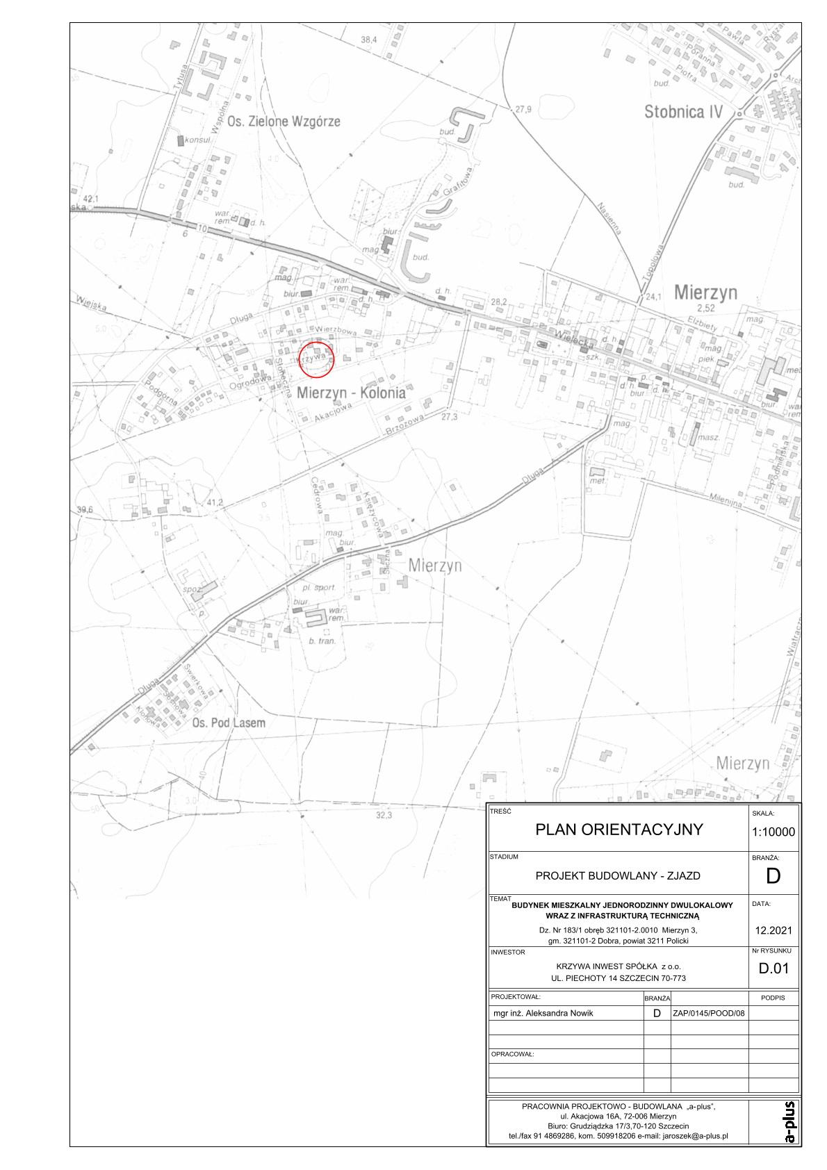 Bliżniak położony przy ul. Krzywej w Mierzynie  znajduje się w bardzo atrakcyjnej lokalizacji, 2 minuty drogi od ul. Weleckiej głownej drogi prowadzącej do granicy Polski  ok. 12 minut drogi od centrum Szczecina . Usytuowany jest w otoczeniu naturalnej zieleni na wzgórzu ,  W pobliżu na pewno nie powstaną w przyszłości żadne obiekty, które zakłócałyby ciszę i spokój mieszkańców. Inwestor zadbał o każdy szczegół, oferując domy z bezpiecznie wykupionym terenem,  Idealne miejsce do wypoczynku, do spacerów po okolicy,  Nastrojowość i urokliwość dodają okolicy dodatkowych atrybutów, co powoduje, że ten rejon  jest miejscem jeszcze bardziej atrakcyjnym do zamieszkania.